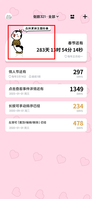 倒数321最新版是一款简单易用的倒计时app,包含正数日、倒数日、纪念日、传统节日等各种重要的日子,可以及时的提醒大家,提前做好游玩计划,不论是工作还是学习的安排都能规划的井井有条。该软件内还有着丰富的个性化小组件,为你的桌面带来全新的主题风格,充分展示自我,自定义添加事项,进行标签分类,再多的重要事情也可以轻松管理,感兴趣的小伙伴抓紧下载试试吧。
