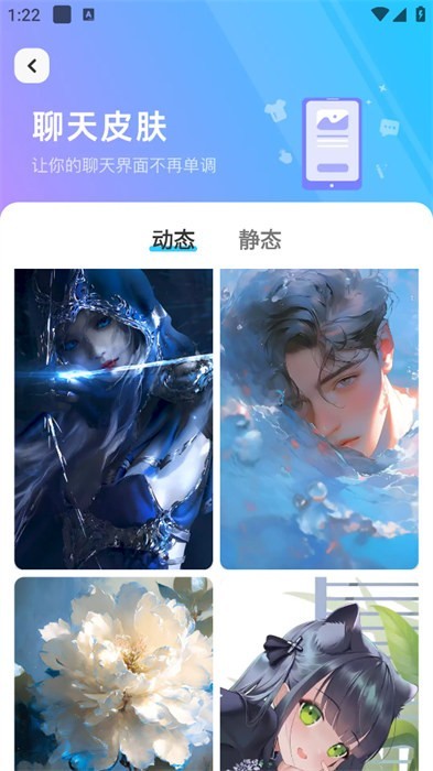 3、还有动态和静态的聊天皮肤供用户们去进行挑选,挑选自己喜欢的聊天皮肤就可以了;