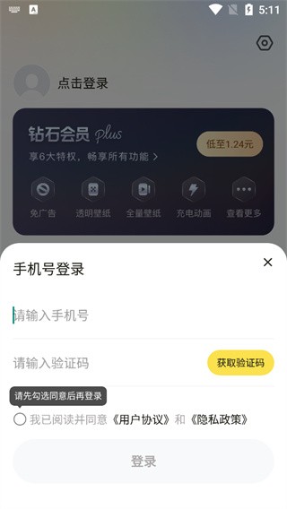 1、双击打开大众动态壁纸后,点击我的页面进行登录;