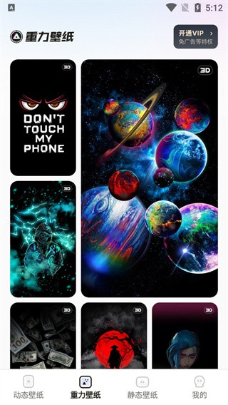 4、点击重力壁纸,可选择你喜欢的重力壁纸;