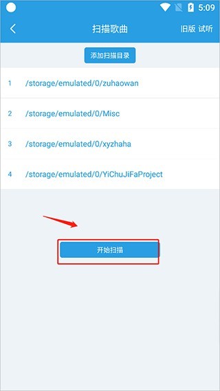 2、在“扫描歌曲”页面选择“添加扫描目录”按钮。