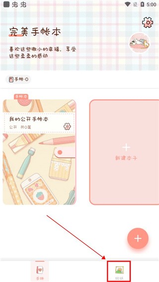 1、下载打开软件后,可以看到软件是比较简约的,点击右侧新建本子就可以开启新的手账本;