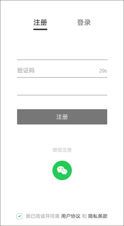 1、下载打开app后,用户可用手机号或是使用微信注册账号进行登录