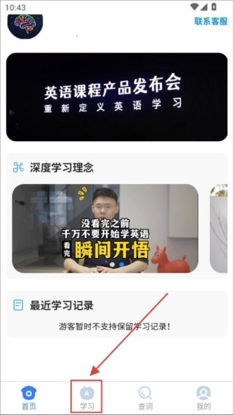 1、进入软件点下方的学习。