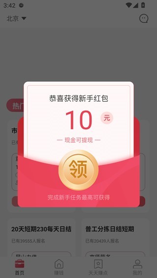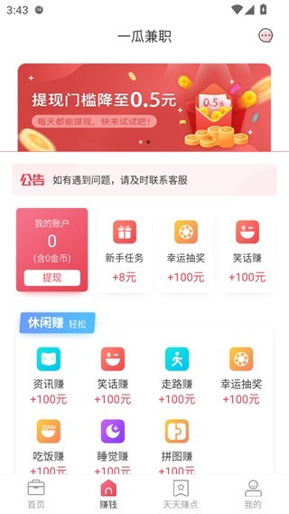 下载安装好一瓜兼职,进入即可看到有红包;