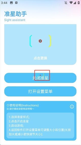 3、点击【开启准星】;