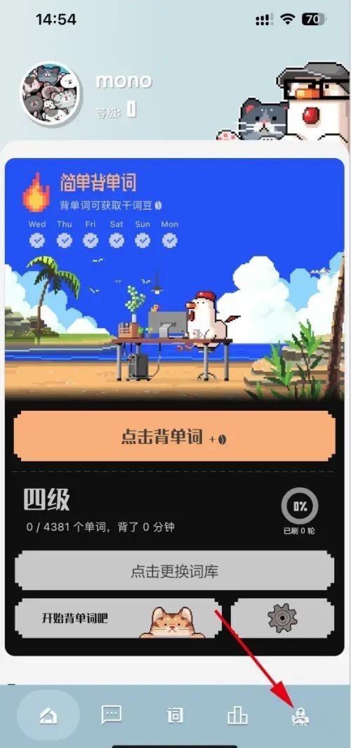 首先,打开干词,在首页点击【我的】图标按钮。