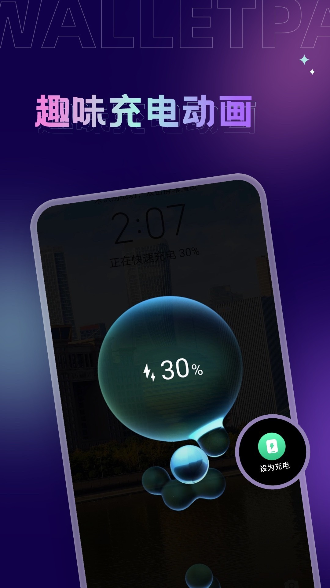 【充电动画】拇指壁纸还提供充电动画功能,这是一种可爱、有趣或华丽的动画效果,当您连接充电器时会自动展现,为等待充电的时间增添一丝轻松和愉悦的氛围。