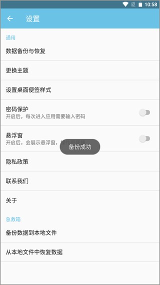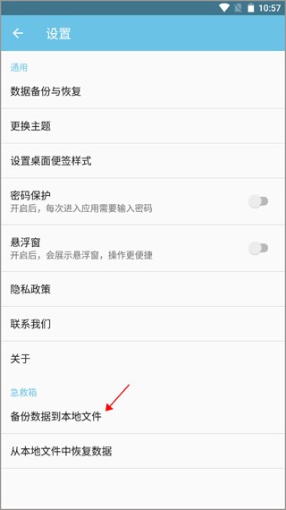 2、设置功能下方有个急救箱小模块,点击其中的“备份数据到本地文件”。