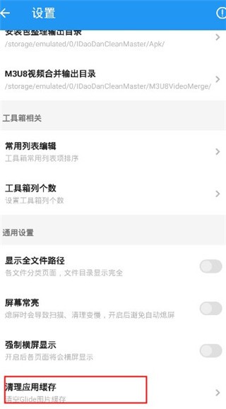 2、在设置中,点击清理应用缓存,如图所示:
