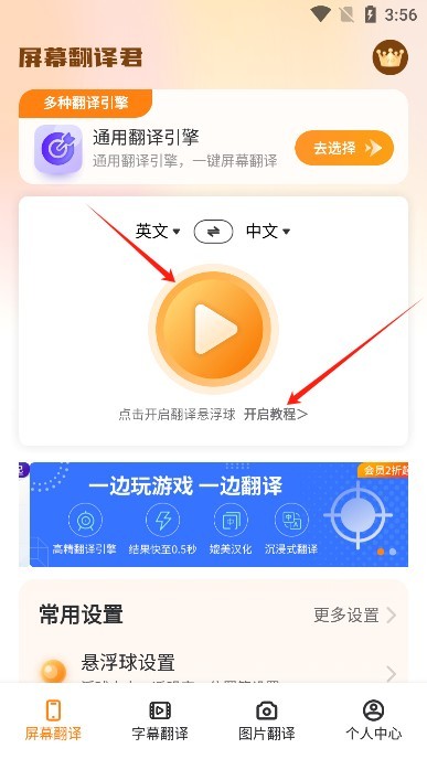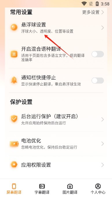 4、悬浮窗设置完毕后就能一键完成屏幕内容翻译了,你还可以设置悬浮球的大小透明度等参数