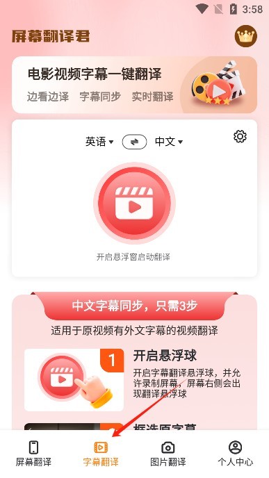 5、除了屏幕翻译我们还有字幕翻译可以使用,同步翻译可以轻松解决语言不互通的问题