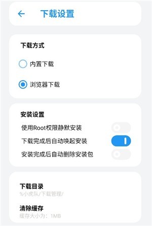 3、点击下载设置,在这里我们可以清理缓存,设置安装方式。