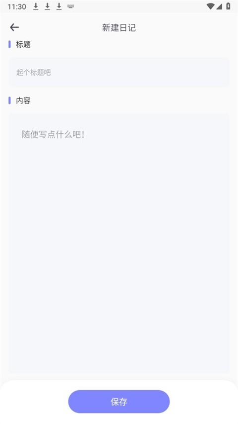 4、输入日记的标题和内容,点击保存即可。