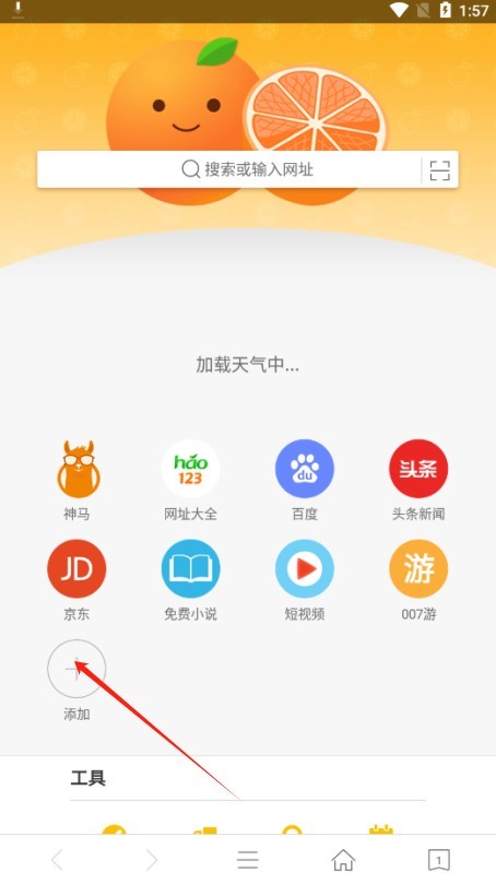 2、在浏览器首页点击右下方的添加