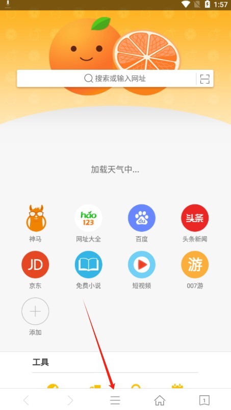 1、在本网站下载以后,打开我们的浏览器点击下方的三条横杠的菜单栏