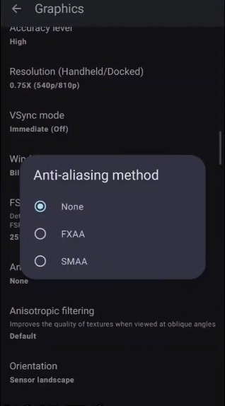 4、抗锯齿设置为None,各向异性过滤设置为 default 或 auto。