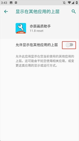 4、允许亦辰画质助手显示在其他应用的上层;