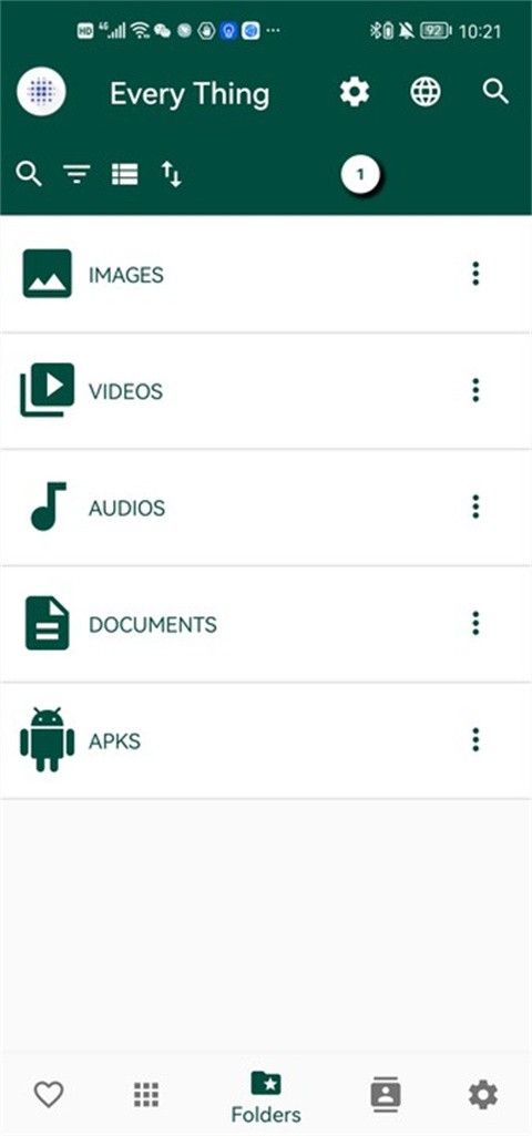 进入到“文件夹”板块,在这里大家可以看到手机上的图片、视频、音乐和文件等等;