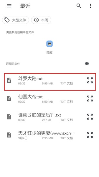 3、可以看到你下载.txt后缀的小说,点击需要导入的小说。
