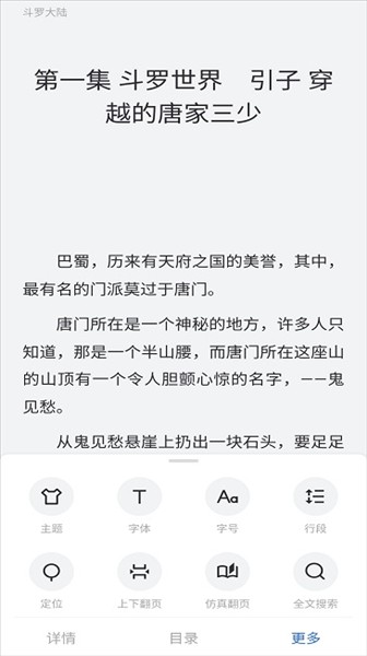 5、点击打开小说即可阅读,还能够在小说页面的【更多】里自定义设置一些参数。