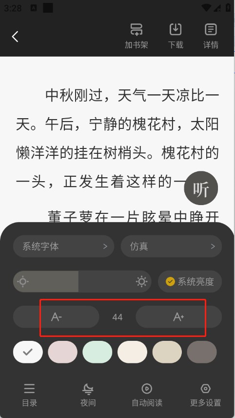 1、点开想看的小说进入到详情页,点击屏幕任意位置呼出菜单栏。