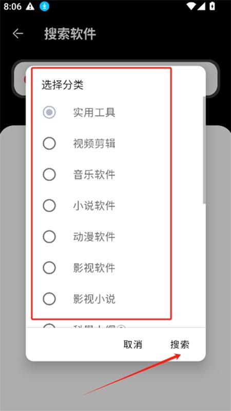 4、然后选择软件分类,点击搜索