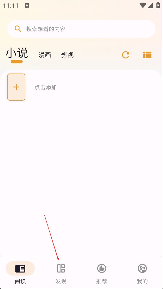 2、底部功能栏选择“发现”,点击中间的“获取书源”就可以了。