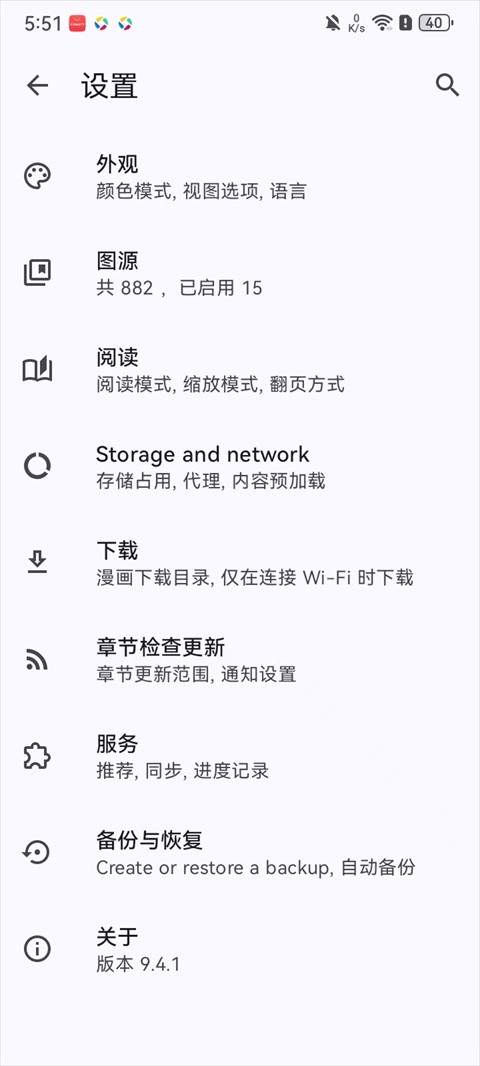 8、在设置中设置外观、图源、阅读等更多个性化功能内容。