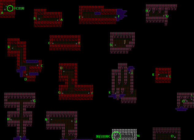 4、被发狂鸟人接触后会随机传送到两个闭锁地图,里面各有一格特别的地板,一个像是发狂鸟人红色的眼;一个像是鸟人受攻击后的尖叫拟声字“あ”(日文的“啊”)。