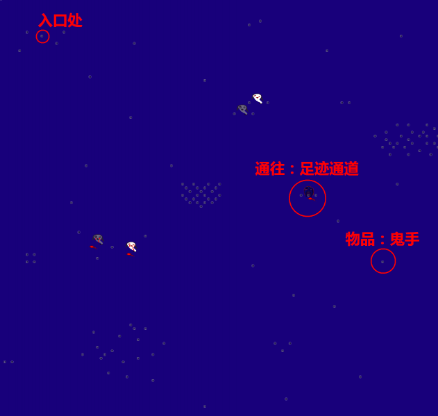 1、每向一っ目の的怪物(断头独眼怪物)刺一刀作机率判定,有256分之1概率被传送到足迹通道。