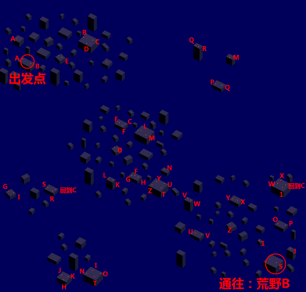 1、跟其中一支矮灯柱调查,可以回来タイルの通路B。(紫色通路B)