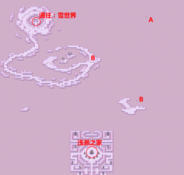 1、B和A的传送方式是调查气球;在浅滩上使用青蛙道具速度会加快。