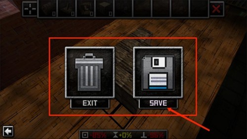 5、此时会出现“EXIT”(退出)和“SAVE”(保存)两个选项。选择右侧的“SAVE”按钮进行保存,即可保存你制作的枪械。