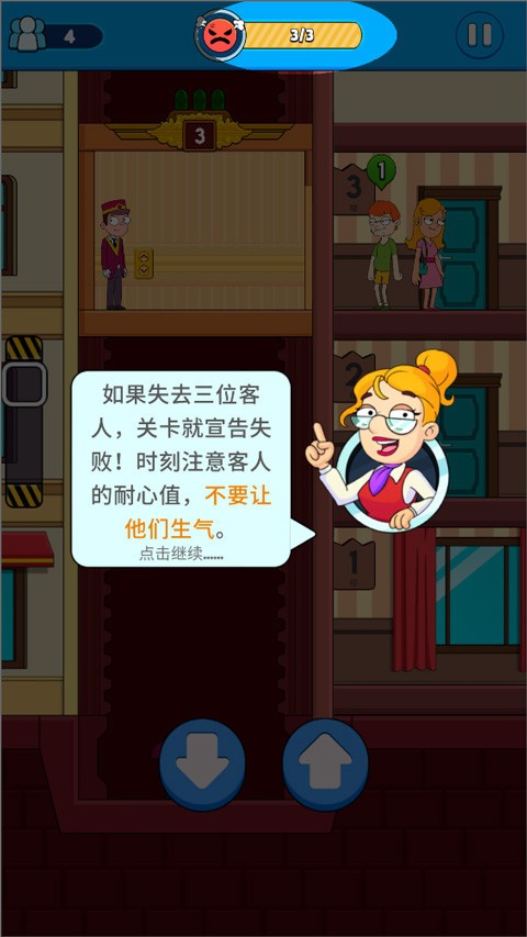 1、进入游戏成为电梯管理员,按酒店指示接待每位客人。
