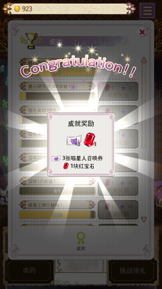 2、然后疯狂的从上面丢材料进去多多益善然后强化,做完要求的任务 失败没有惩罚但是某些任务很值得做,比如给猫券和盾牌,强化加成的某些任务,强化加成倒是没什么必要,盾多就行了。