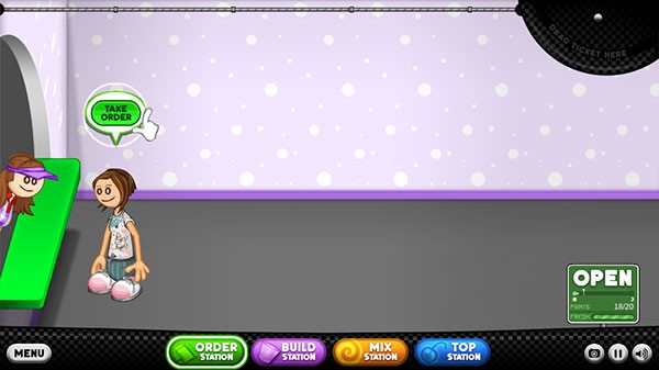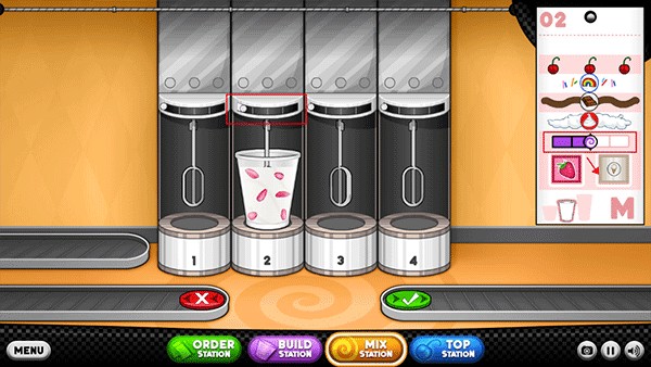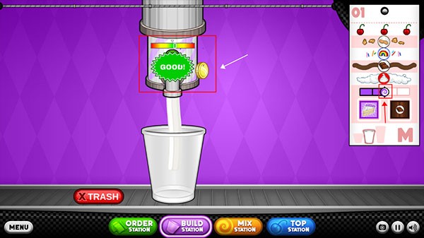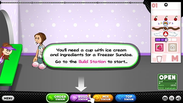 5、你会把每位顾客的订单记在订购单。你需要一杯冰淇淋和冷冻Sundae的原料。前往制作台开始制作…