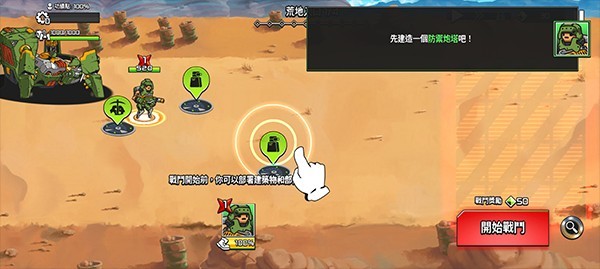 2、战斗开始前,玩家可以自由规划基地布局,选择建造防御设施或布置部队