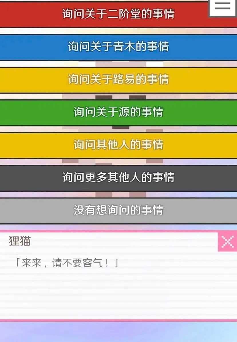 出现狸猫占卜时选择(这里可以存档,除闺蜜线其他人的支线直接读档):询问其他人的事情