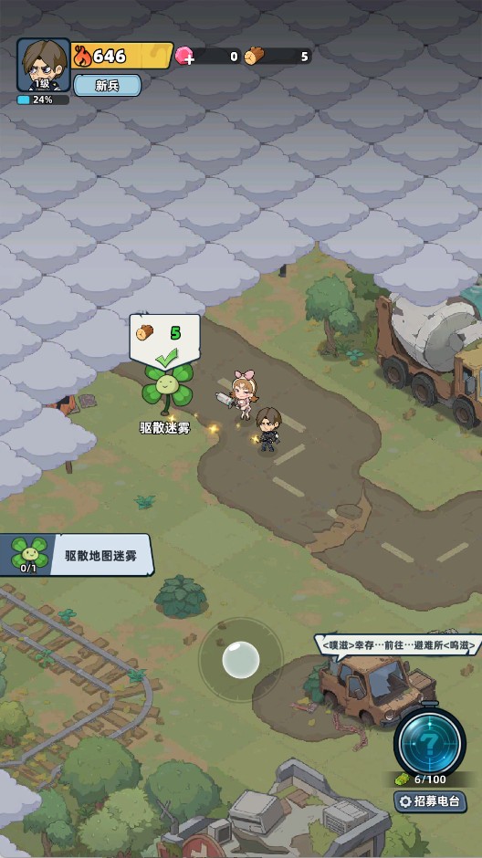 2、靠近地图中的 “驱散迷雾” 道具,消耗对应物品解锁更多探索区域。