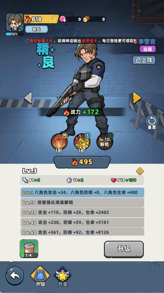 5、使用搜集到的物资升级幸存者,提升战力、攻击、生命等属性增强生存能力。