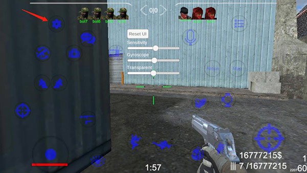 1、野蛮打击中文版玩家们进入游戏后可以在上面看到敌人和你的队友。(下图顶部红色方框区域)