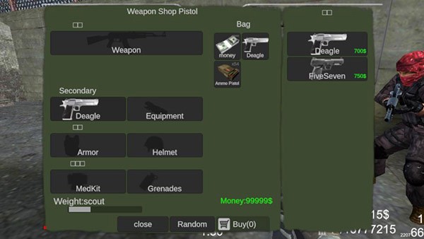 3、可以点击【背包】就可以在里面购买需要的枪支、装备。