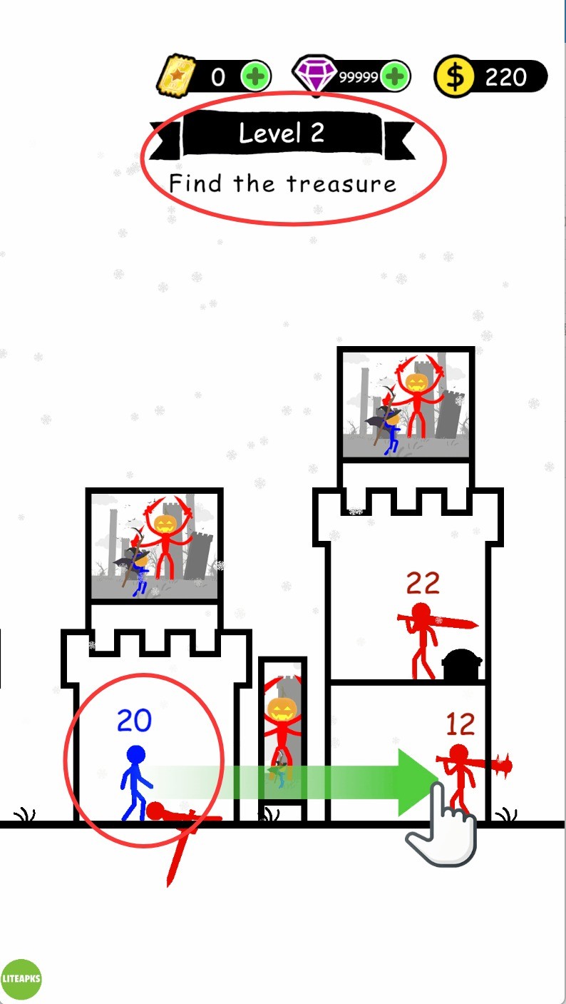 火柴人英雄塔防内置菜单是一款考验脑力的火柴人爬塔游戏,策略的闯关游戏玩法很不错,许多精彩的乐趣都能够尝试,解锁许多的乐趣,更多的闯关模式都可以尝试和体验,还有机会得到很多的金币奖励,利用爬塔的方式来开始冒险,结合了对战的乐趣,玩起来很轻松,让自己头顶上面的数字来变的更加大,击败数字比自己小的敌人,喜欢火柴人英雄塔防内置菜单的玩家一定不要错过!