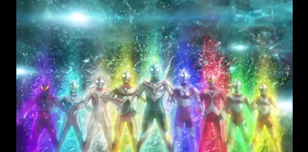 欧布接受银河,维克特利,艾克斯三个奥特曼的光之力量变成了欧布奥特曼——三位一体形态。