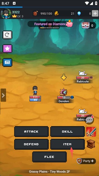 2、进入战斗后,点击“ITEM”,打开物品栏。