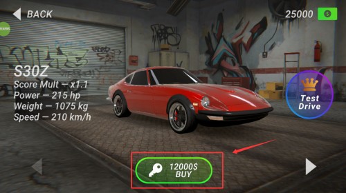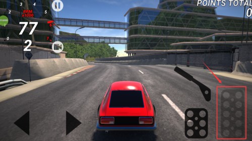 1、下载安装好漂移猎人新版,打开进入游戏之后,左边上方的“+-”号是用来切换车辆的前后档位;
