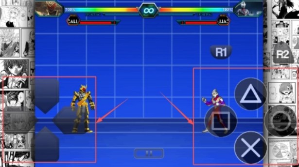6、正式开始游戏,左边玩家可以控制方位键,右边控制功能键,如果你不知道怎么出招的话,可以点击暂停键;