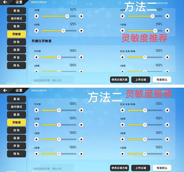 倍镜灵敏也可以调高点,中程时开镜打人可以快速移动倍镜,进行精准打击。(下图是我自己的灵敏度推荐给大家,方法二)
