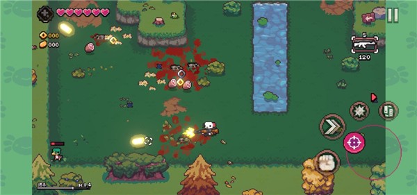 4、地图中随机出现敌人,玩家需要操控左边的移动键的同时,操控右边的攻击方向键进行攻击,小编推荐你合理利用地形帮助你躲避敌人攻击。
